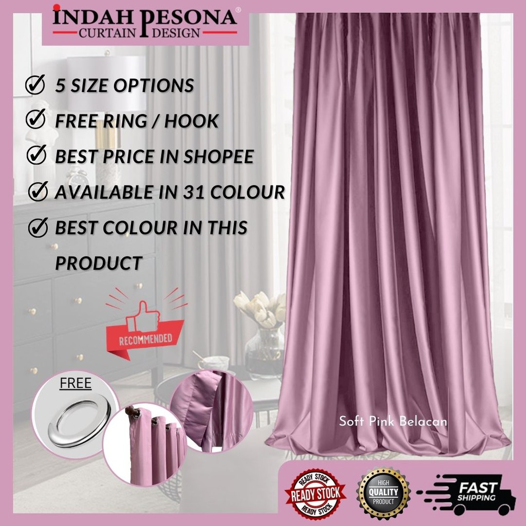 Siap jahit langsir rumah,langsir raya kain tebal curtain window(free eyelet /ring) pink belacan.